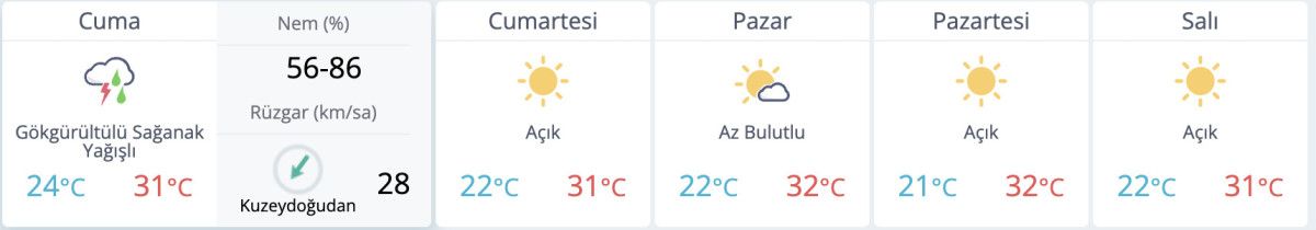 5 GÜNLÜK HAVA İDDİA RAPORU