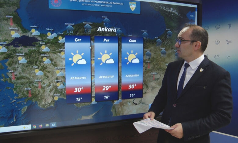 İç Anadolu’nun kuzeyinde kısa vadeli yağış geçişleri görebiliriz lakin bu hafta ekseriyetle yağışlar Karadeniz bölgesinde, Doğu Anadolu’nun kuzeyinde ve Toroslar mevkiinde görecek” diye konuştu. Sıcaklarda ise kademeli olarak düşüş olacağını söyleyen Çelik, “Yurt genelinde toplamda 3-4 derece düşüş göreceğiz diyebiliriz. Üç büyük kentimize bakarsak bilhassa İstanbul ve Ankara’da modüllü az bulutlu bir hafta yaşayacağız.
