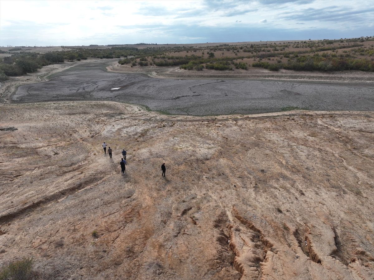 Gölet, kuraklık ve çok sıcaklara bağlı yaşanan buharlaşma nedeniyle büsbütün kurudu.