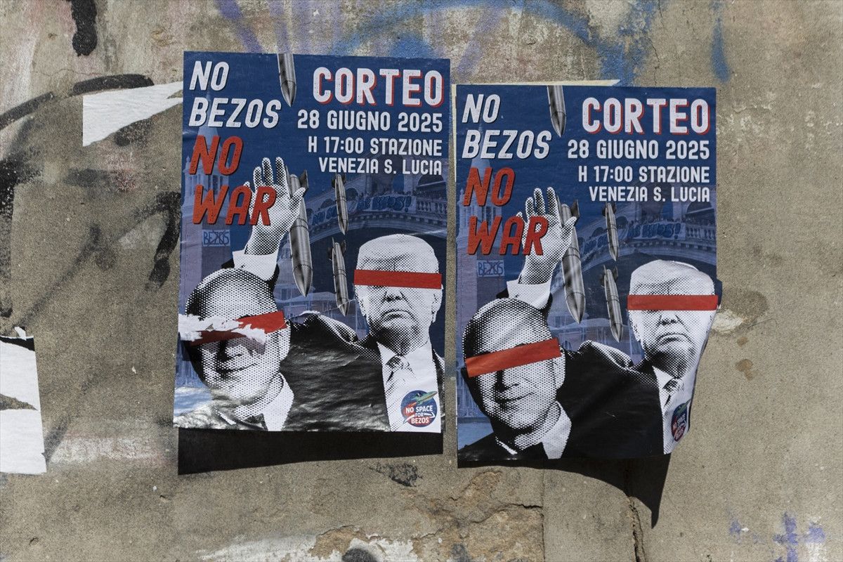 23 Haziran’da Greenpeace Italia ve İngiliz “Everyone Hates Elon (Herkes Elon’dan nefret eder)” isimli küme, yeniden Aziz Mark (San Marco) Meydanı’nda üzerinde Bezos’un bir fotoğrafı ve İngilizce “Düğününüz için Venedik’i kiralayabiliyorsanız, daha fazla vergi de ödeyebilirsiniz” yazılı 400 metrekarelik bir pankart açmıştı. Polis bunu toplayarak kaldırmıştı.