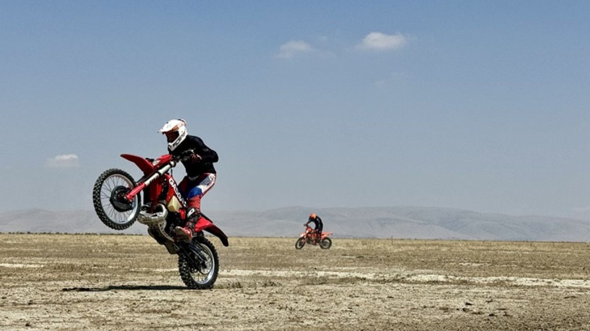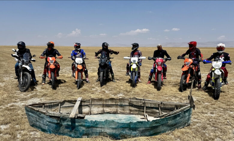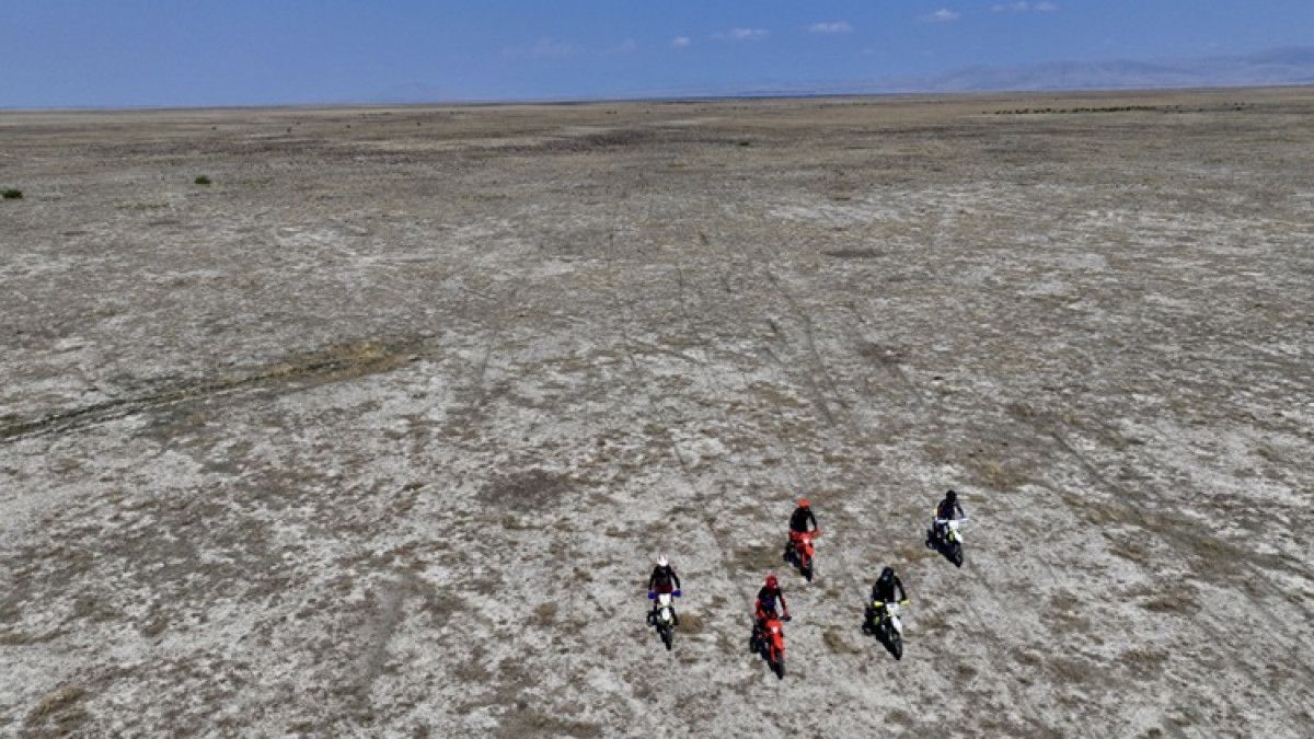 Enduro branşında dereceler elde etmiş sportmenlerin da ortalarında bulunduğu 10 motosikletli, çevresel felaketlere farkındalık oluşturmak için göl yatağında bir ortaya geldi. Gölün kuruyan tabanında kilometrelerce yol alan sportmenler, bozkırı andıran bu görünüme tanıklık etti.