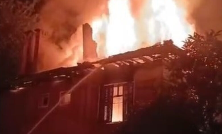 Bölgeye gelen itfaiye grupları alevleri söndürürken, konut küle döndü.