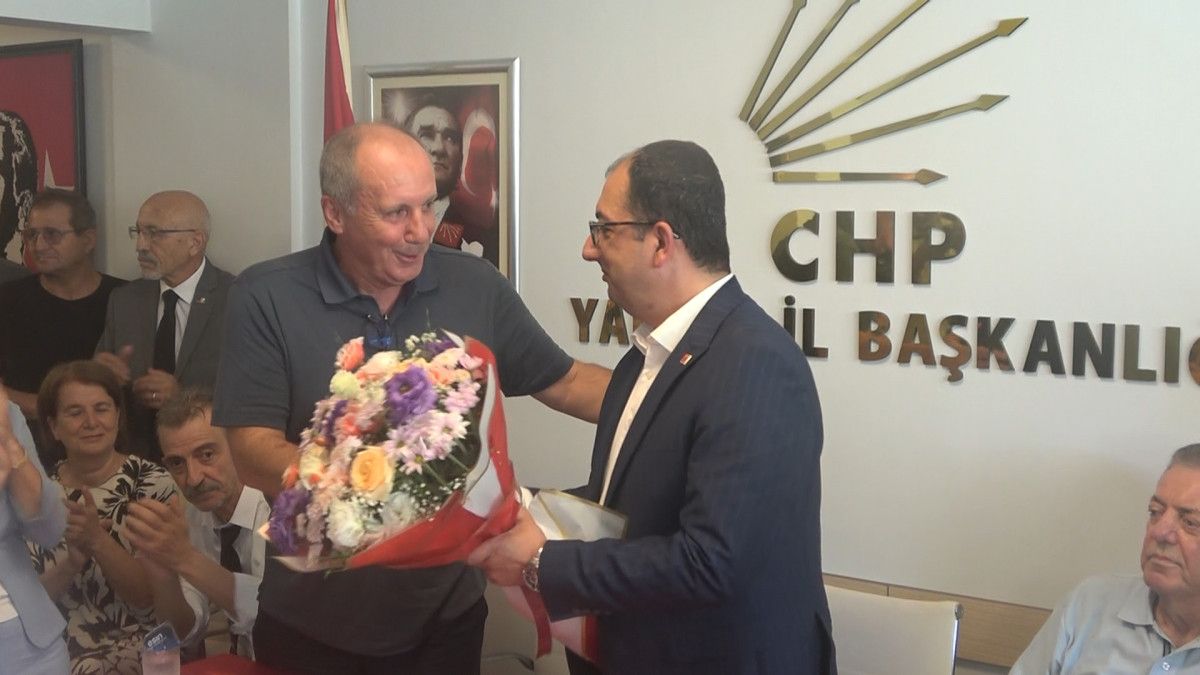 Memleket Partisi’ni kapatıp yine CHP’ye dönen Muharrem İnce, memleketi Yalova’da partililerle bir ortaya geldi. CHP Yalova Vilayet Teşkilatı’nda gerçekleşen buluşmada, İnce’ye eski CHP ve Memleket Partisi Milletvekili Özcan Özel ile eski Memleket Partisi Vilayet Lideri Ertan Şener eşlik etti. CHP İl Başkanı Erdem Doğancı, yeniden CHP’ye katılan İnce ve eski Memleket Partililere güzel geldin konuşması yaparak, İnce’ye çiçek takdim etti.