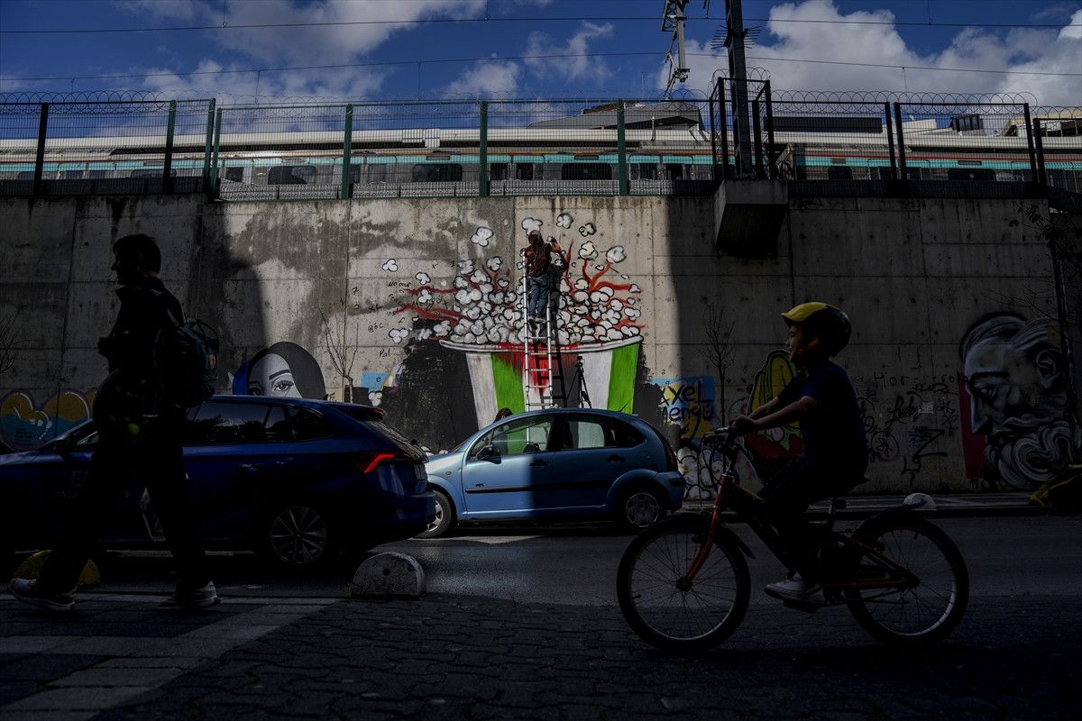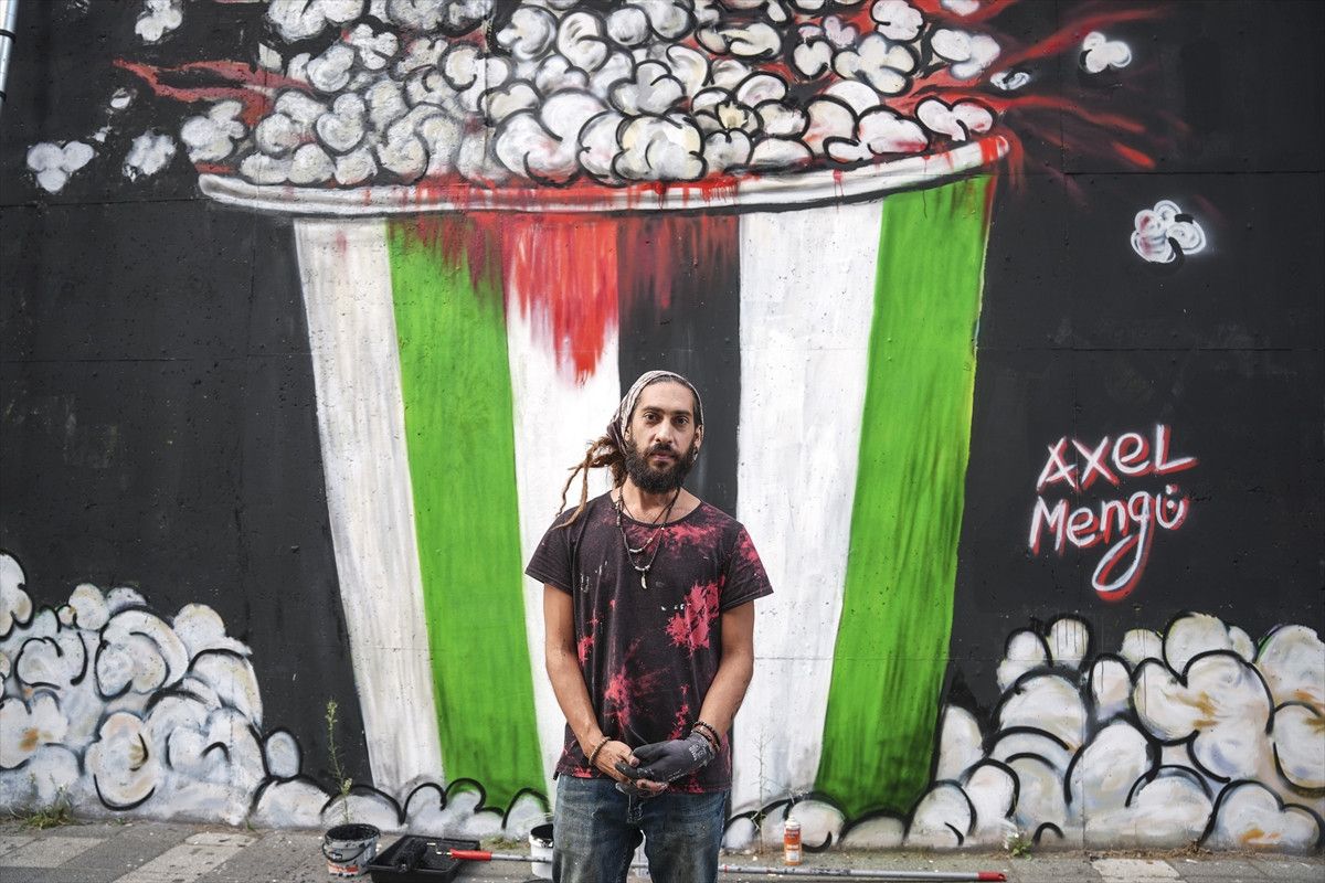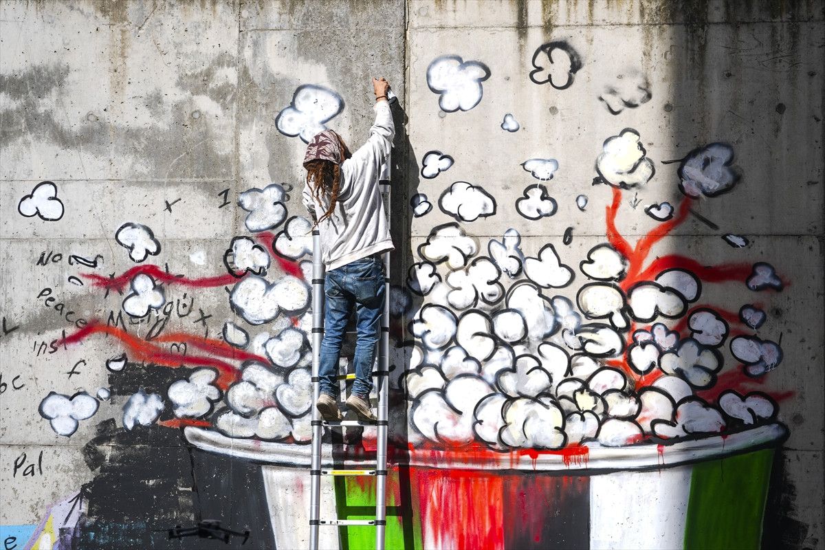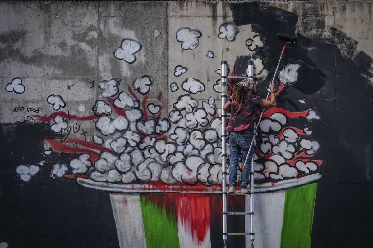 İsrail’in Gazze’de aylardır süren ataklarında ortalarında çocuklar, bayanlar ve gazetecilerin bulunduğu binlerce sivil ömrünü yitirirken, dünyanın bu katliama sessiz kalması sanatkarların dikkatini çekiyor. Bu kapsamda mural sanatkarı Axel Mengü, Gazze’deki yıkımı ve milletlerarası toplumun sessizliğini görünür kılmak için “Dünya İzlerken” isimli bir mural çalışması gerçekleştirdi.