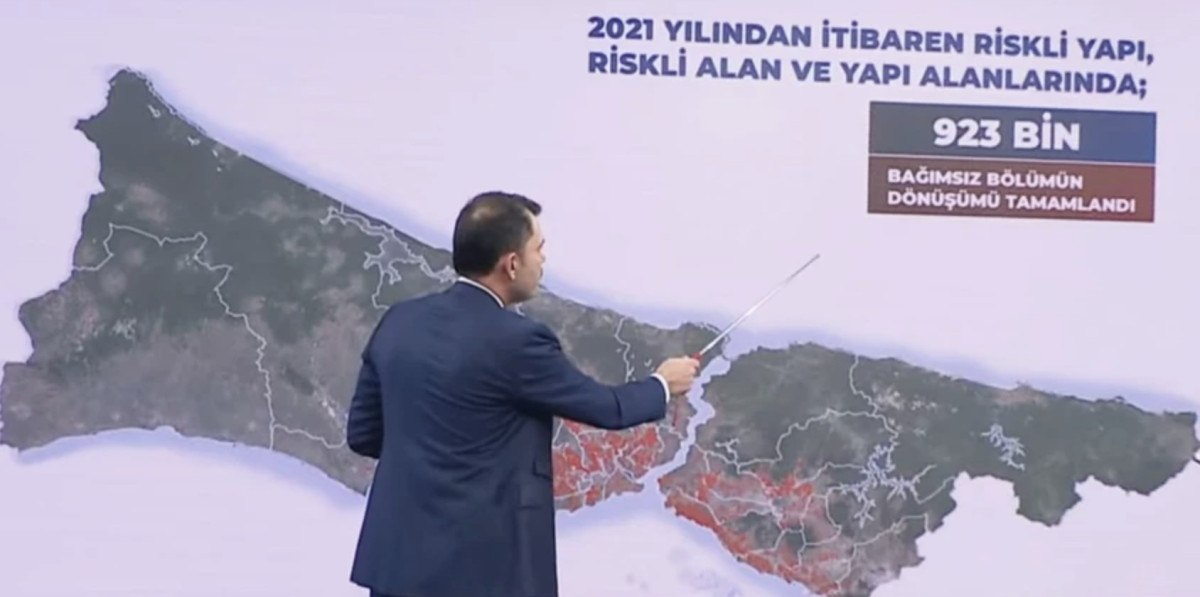 2000 yılında İstanbul’un tamamı riskliydi. Bu çerçevede yapılan projeler, imar planları, düzenlemeler, yönetmelikler yüzde 60’ını inançlı hale getirmiş ve bu çalışmaları 2012 yılından bugüne sürdürüyoruz ve 2012 yılından bugüne 923 bağımsız kısmın dönüşümünü tamamladık. Bizim İstanbul’u kurtarma planımız bu. Devletimiz tüm imkanlarını vatandaşlarımız için seferber etmiş durumdadır. Cumhurbaşkanımız 2023’ün Mayıs’ında söylemişti. İstanbul’da dönüşmek isteyen her vatandaşımıza takviye olacağımızı söylemiştik ve bu tarihten bugüne 41 bin bağımsız kısım bu projeye dahil oldu. Hala müracaat alıyoruz.
