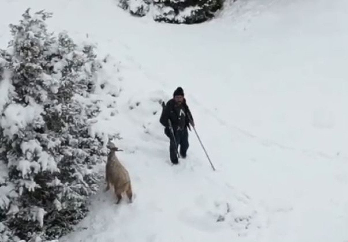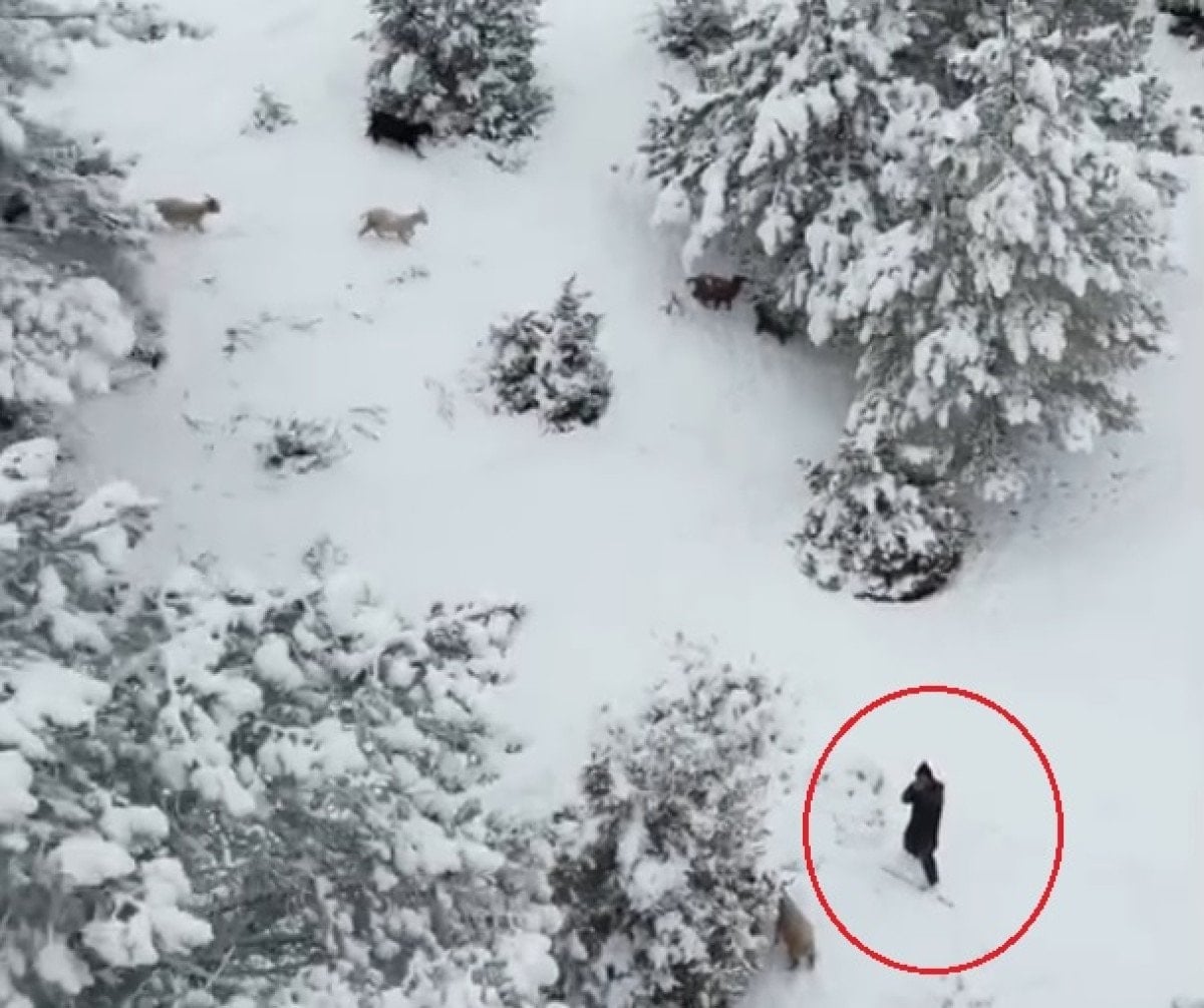 Ankara’da Nallıhan ilçesine bağlı Sarıkaya köyünde yaşanan olayda, karla örtülü ormanlık alanda hayvanlarını otlatan bir çoban ile havada seyreden bir drone ortasında enteresan anlar yaşandı.