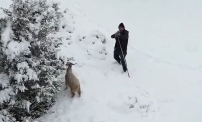 Yüksek kesitlerde kar yağışının tesirli olduğu sırada sürüsünün başında bulunan çoban, gökyüzünde kendisine hakikat yönelen drone’u fark etti. Aygıtın çıkardığı sesten ve ani hareketlerinden rahatsız olan çoban, durumu tehdit olarak kıymetlendirerek refleksle omzundaki tüfeği kaldırdı.