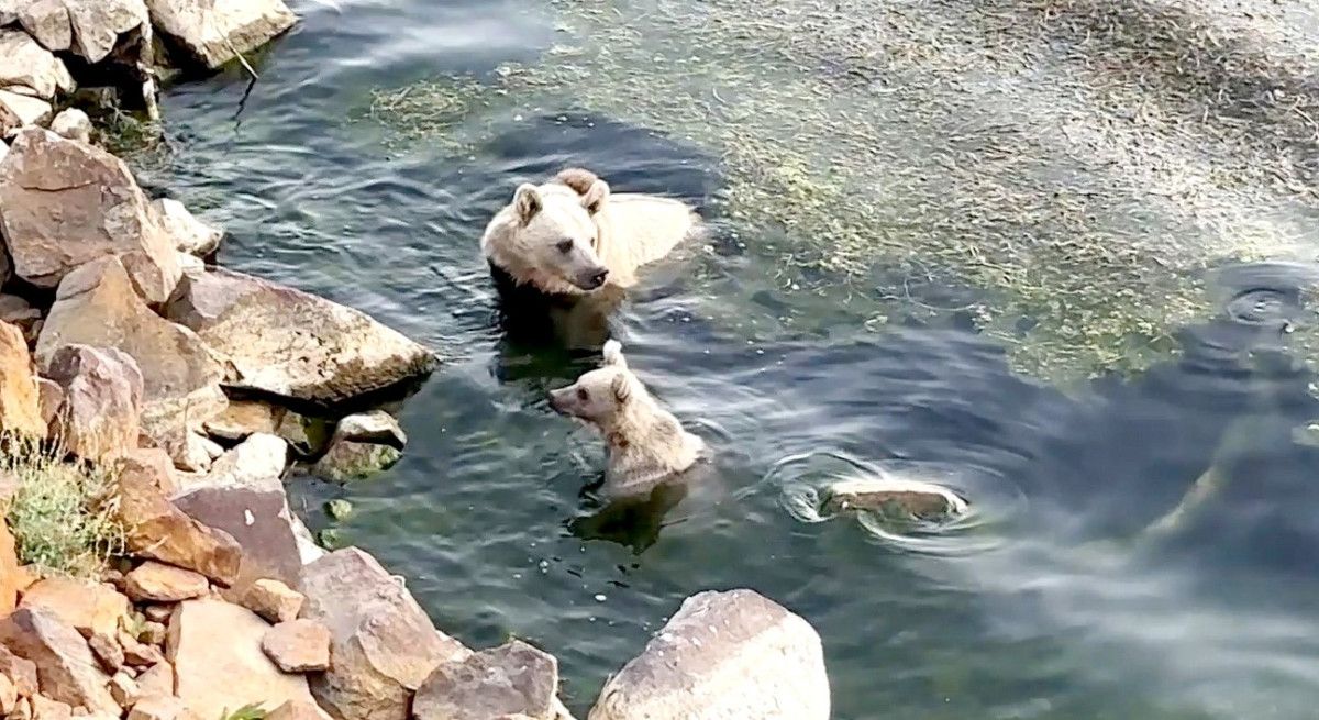 Ziyaretçilerin cep telefonlarıyla kaydettiği imgelerde ayıların gölde yüzdüğü, suyun içinde oyun oynadığı ve keyifli anlar yaşadığı görüldü. Doğaseverler, bu anların “doğanın en şirin sürprizlerinden biri” olduğunu tabir etti.