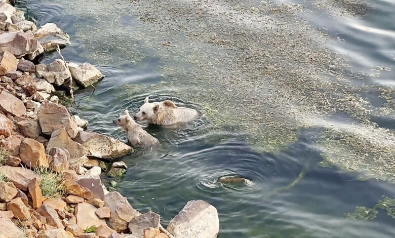 Nemrut Kalderası’nda ayılar hem yüzdü hem piknikçilere ‘misafir’ oldu