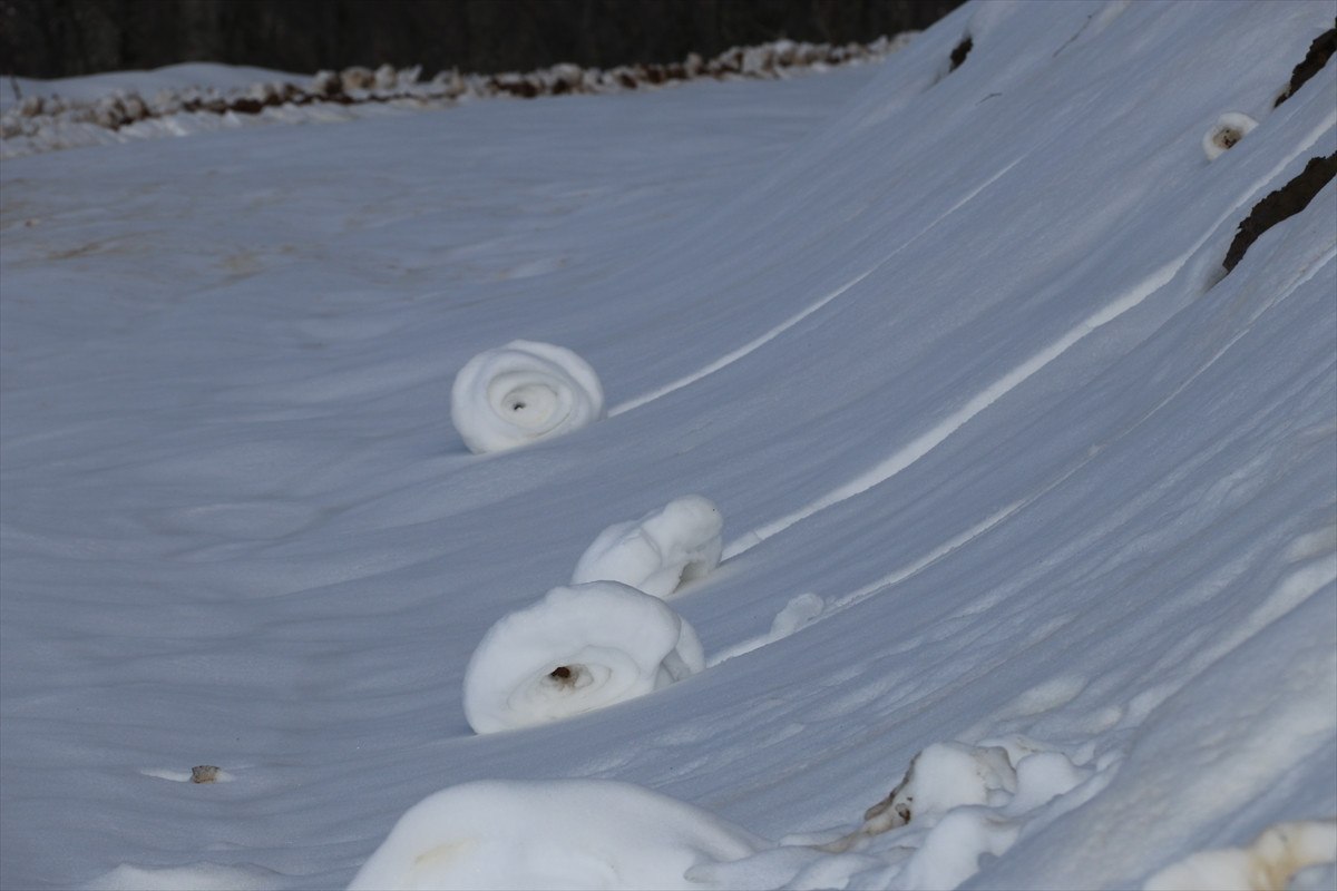 Bu defa Türkiye’de Amasya’nın Taşova ilçesinde tabiatta nadir rastlanan bir tabiat olayı olan kar ruloları görüldü.
