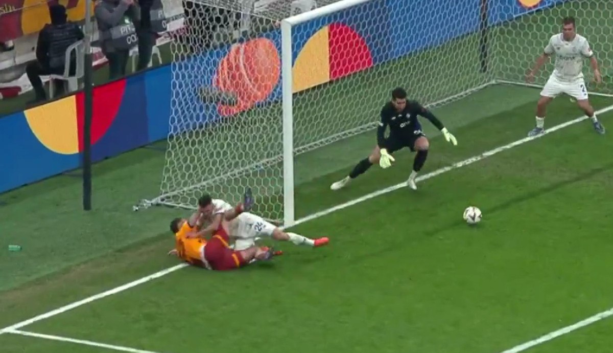 Hakem Kristo Tohver, VAR’dan gelen ihtarın akabinde konumu ekranda izledi ve kırmızı kartı iptal ederek Galatasaray lehine penaltı noktasını gösterdi.