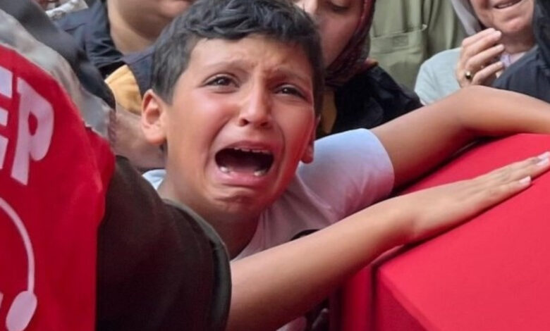 Babasının tabutu başından ayrılmak istemeyen çocuk, “Baba ben sensiz ne yapacağım?” diye sordu.
