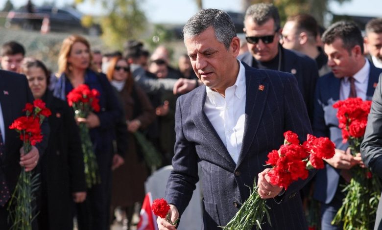 CHP Genel Başkanı Özel ile beraberindekiler, mezarlara karanfil bıraktı.