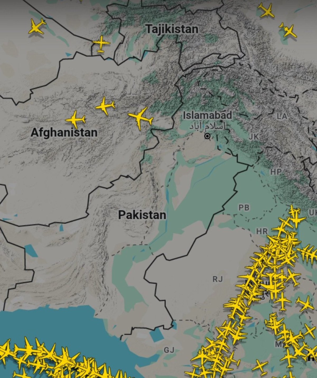 Uluslararası havayolları da bölgeden geçen rotalarını değiştirirken, Pakistan’ın askeri operasyon duyurusunun akabinde sivil hava alanında bariz bir azalma daha görüldü.