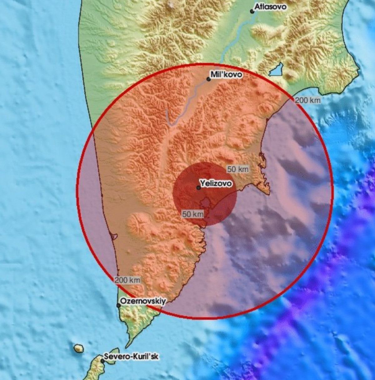 ABD Jeolojik Araştırma Merkezi (USGS), zelzelenin Petropavlovsk-Kamchatsky kentinin 145 kilometre doğusunda 10 kilometre derinlikte meydana geldiğini aktardı.