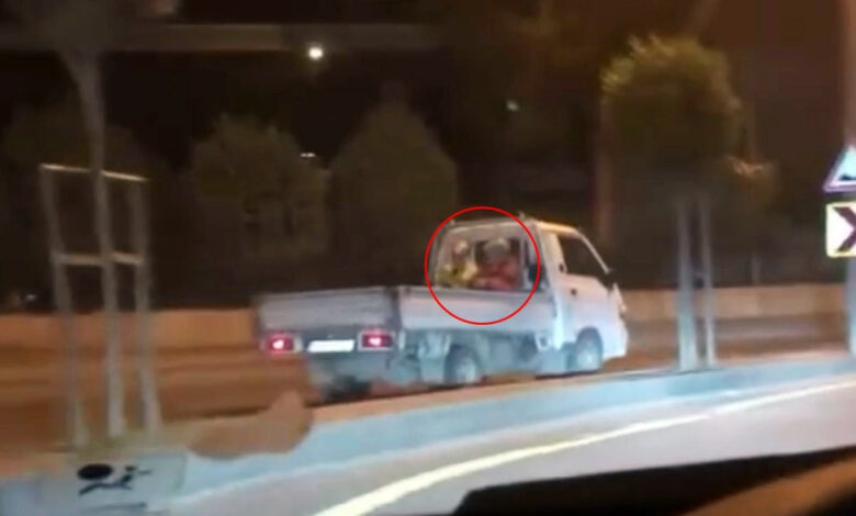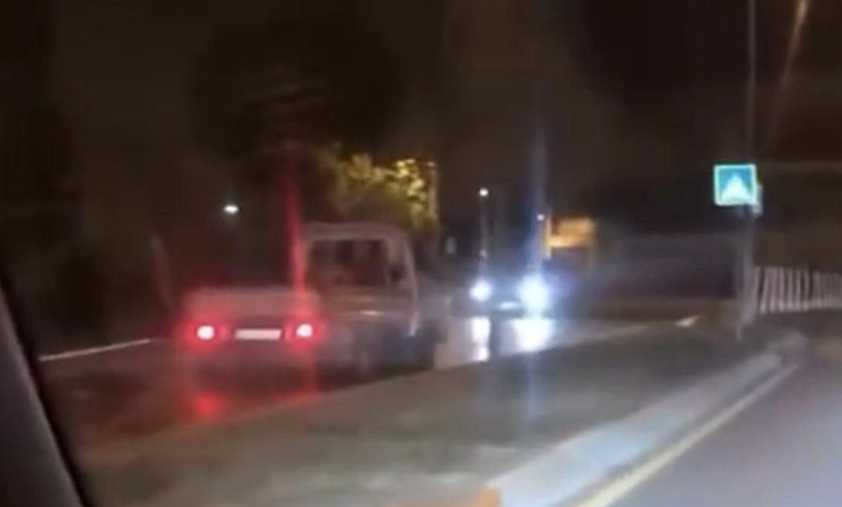 Öte yandan, zıt şeride giren kamyonet şoförünün kural tanımazlığının yanı sıra, aracın açık kasasında hiçbir güvenlik tedbiri olmadan seyahat eden iki kişi de dikkat çekti.