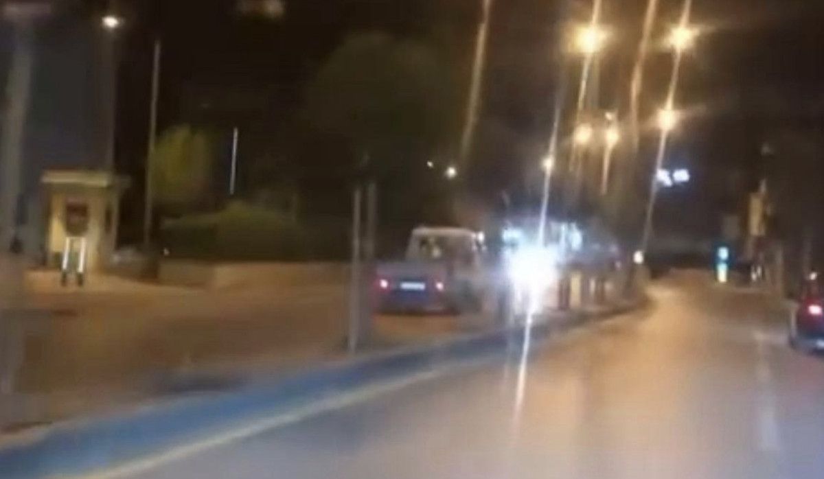 Kamyonet sürücüsünün, öbür şoförlerin ikazlarına da aldırış etmeden tehlikeli seyahate devam ettiği anlar cep telefonu kamerasına yansıdı.