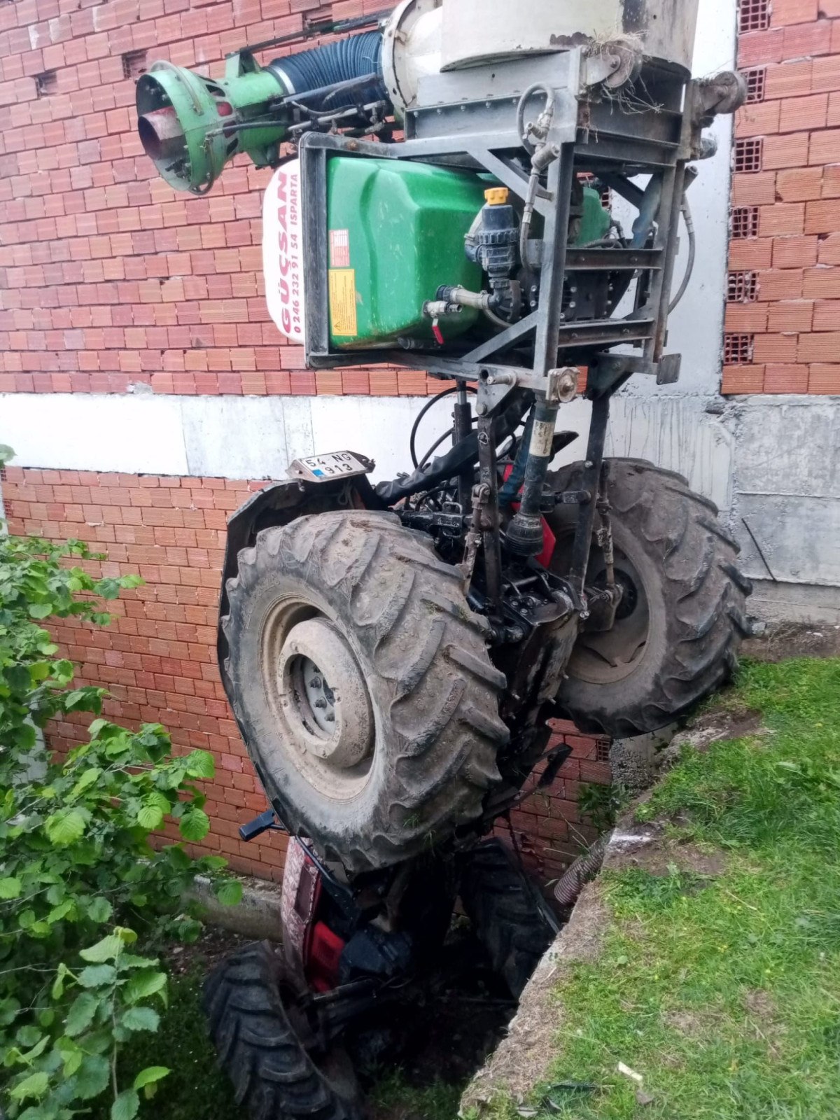 Bu esnada duvara çarpan traktörde istikrarını kaybeden çocuk düştü.