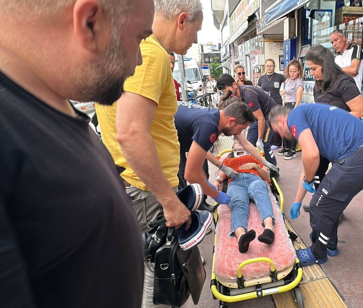 Çarpmanın tesiriyle motokurye, motosikletiyle birlikte yere düşerek, yaya ise çarpmanın tesiriyle yaralandı.