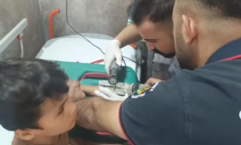 Şanlıurfa’da çocuğun parmağına sıkıştırdığı cıvata pulu kesilerek çıkartıldı