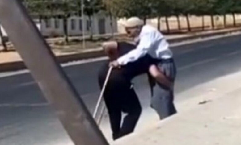 Şanlıurfa’da güvenlik görevlisi, yürümekte zorlanan yaşlı adamı sırtında taşıdı