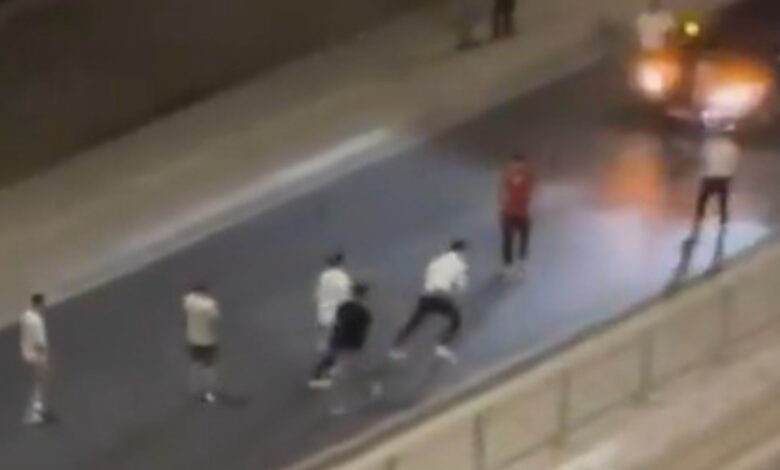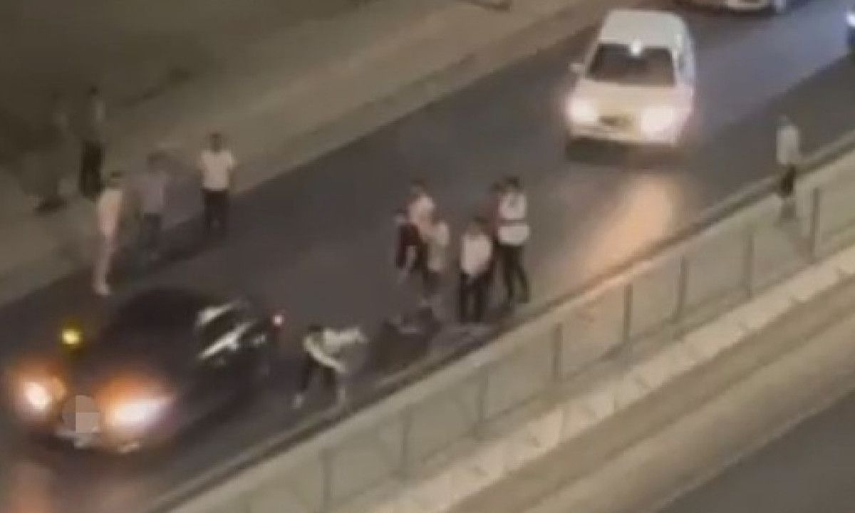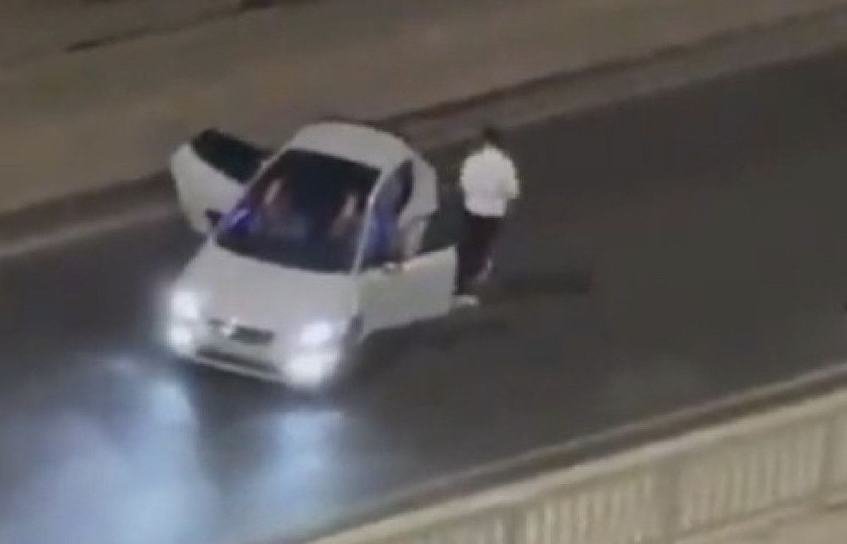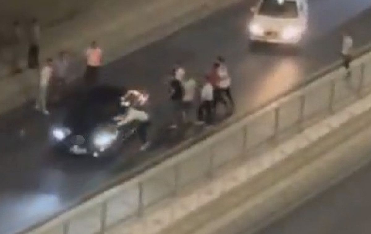 Görüntülerde, aracın önü 2 kere kesilerek, alkollü olduğu argüman edilen bireylerce akın gerçekleştiriliyor.