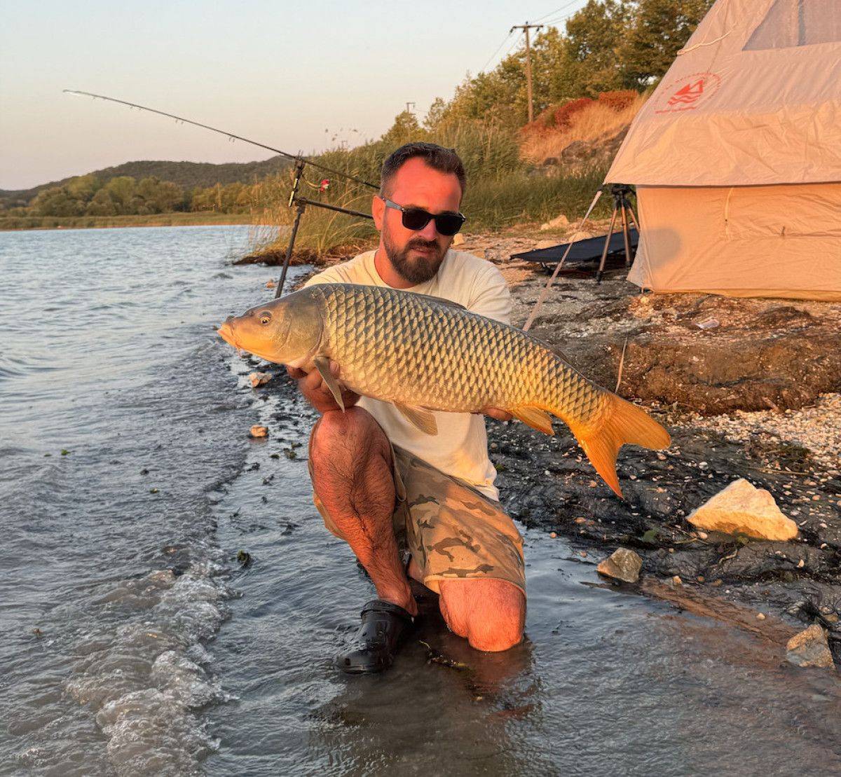 Gölün kenarına kamp kuran sportif balıkçı, 2 ile 13 kilogram ortasında değişen toplam 17 sazan tuttu.