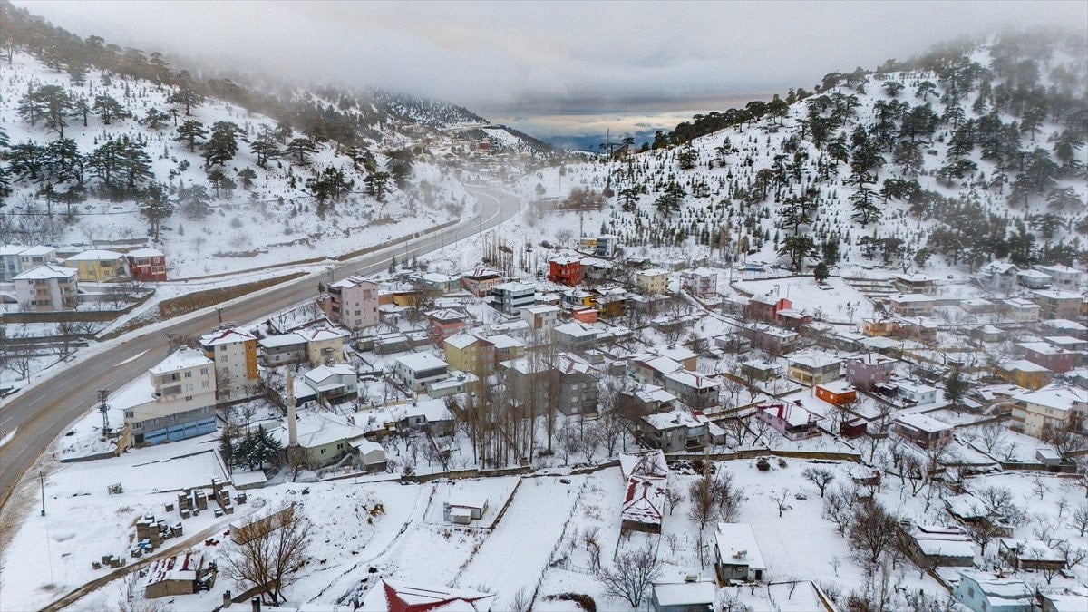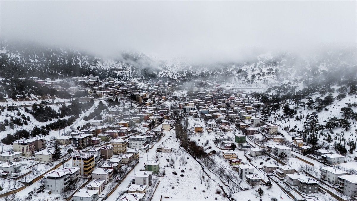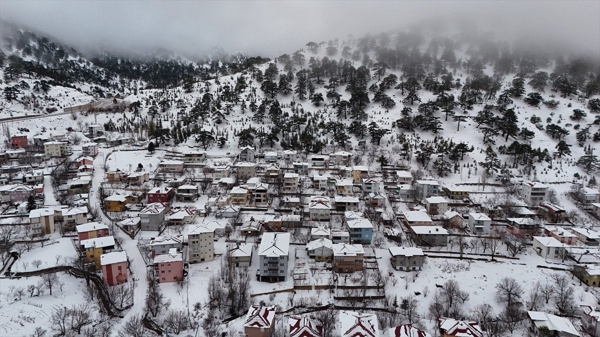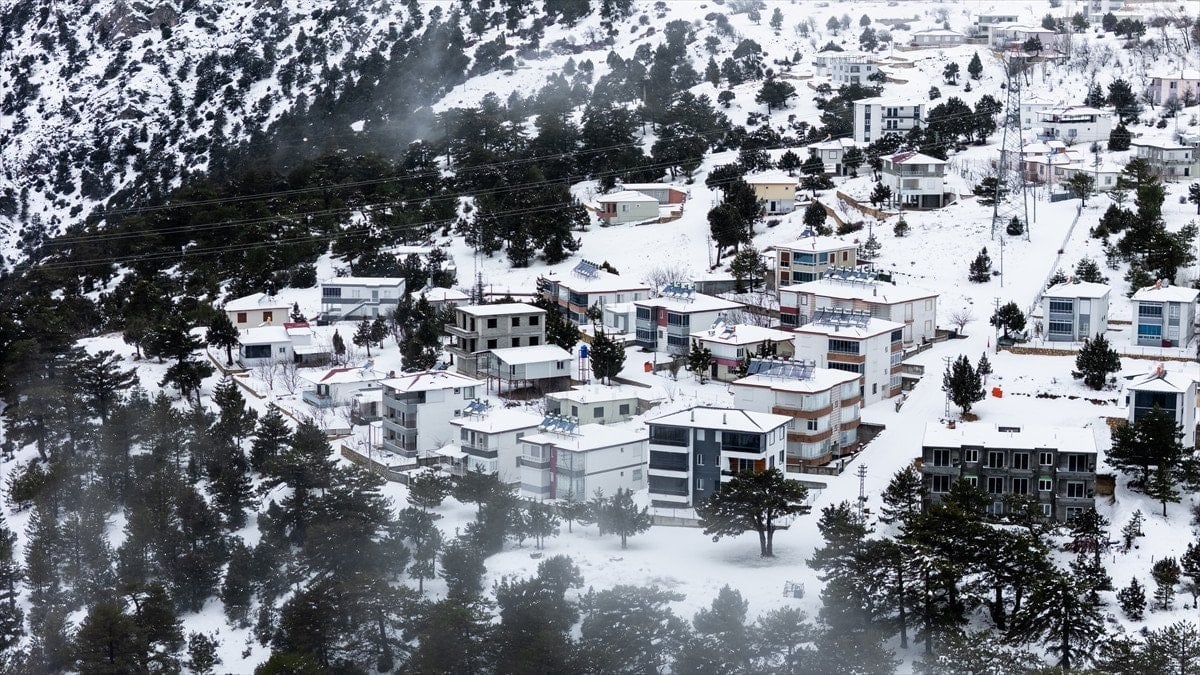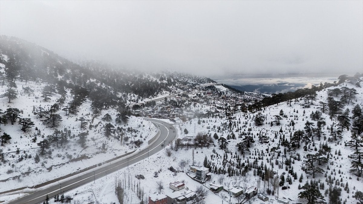 Doğal güzellikleriyle bilinen Sertavul Yaylası’nda oluşan kış görünümü, dronla havadan görüntülendi. Beyaz örtüyle kaplanan yayla, kartpostallık manzaralar oluşturdu.