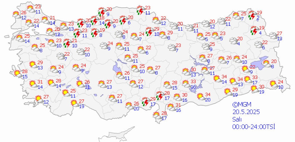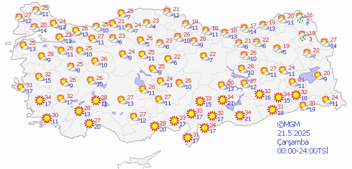 Meteoroloji Genel Müdürlüğü tarafından yapılan kestirimlere nazaran: