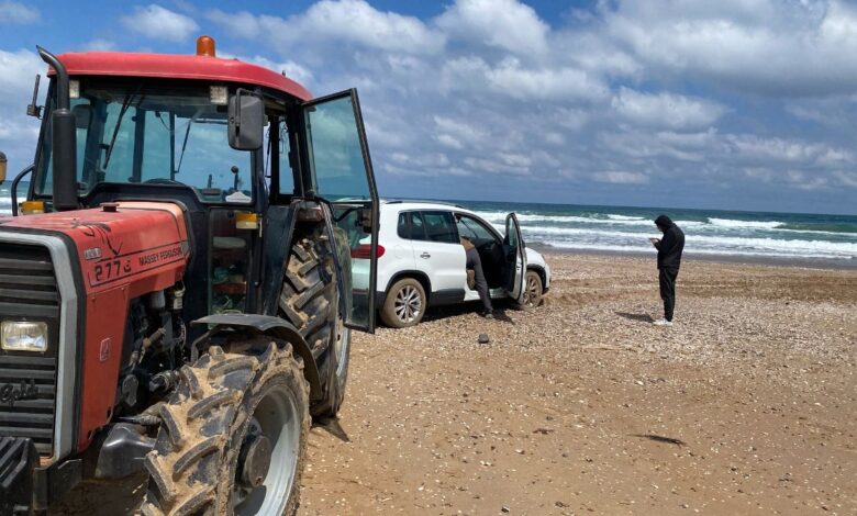 Zamanla kum yere saplanan araba, dalgaların da tesiriyle denize sürüklendi ve su almaya başladı.
