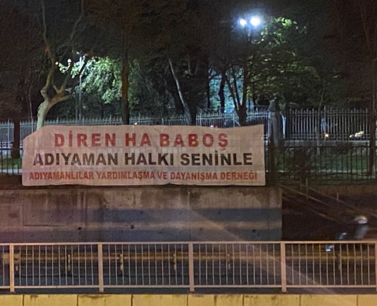 Pankartta Öncü’nün üslubunu hatırlatan “Diren ha baboş, Adıyaman halkı seninle” yazısı dikkat çekti. Pankartın fotoğrafını, Başkan’ın kızı Ceren Lider Kandemir X hesabından paylaştı.