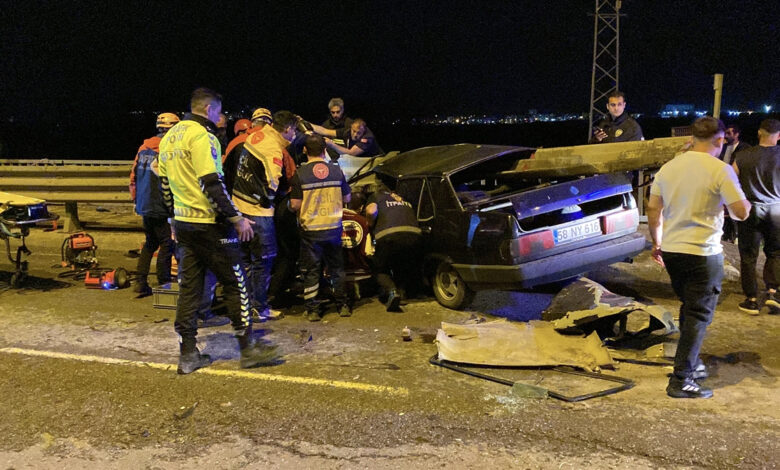 Sivas’ta bariyere saplanan otomobilden sürücü sağ çıktı