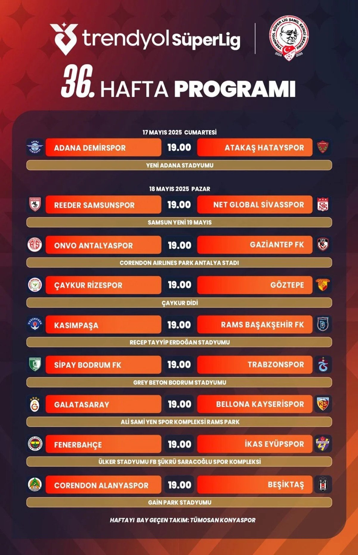 Türkiye Futbol Federasyonu, Muhteşem Lig’in 36. haftanın maç programını duyurdu.