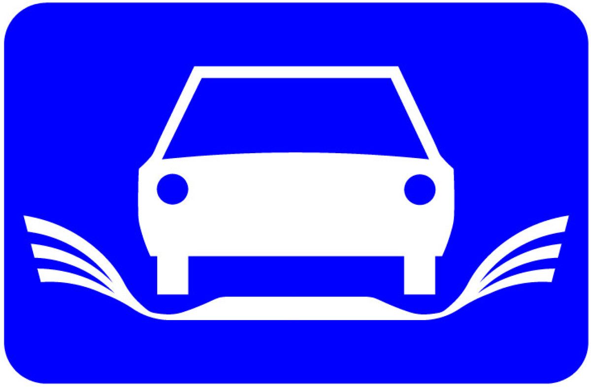 Belçika’da kullanılan ve Avrupa’nın kimi ülkelerinde de rastlanan bu özel tabela, GiII tipi bilgi levhası kategorisinde yer alan simgede yer alan “kanatlar”, lastik altından sıçrayan suyu temsil ediyor.