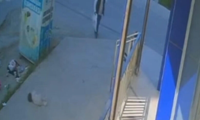 Bu ortada bebeğin düştüğü anlar, etraftaki bir iş yerinin güvenlik kamerasına yansıdı.