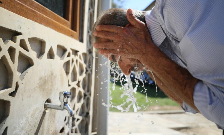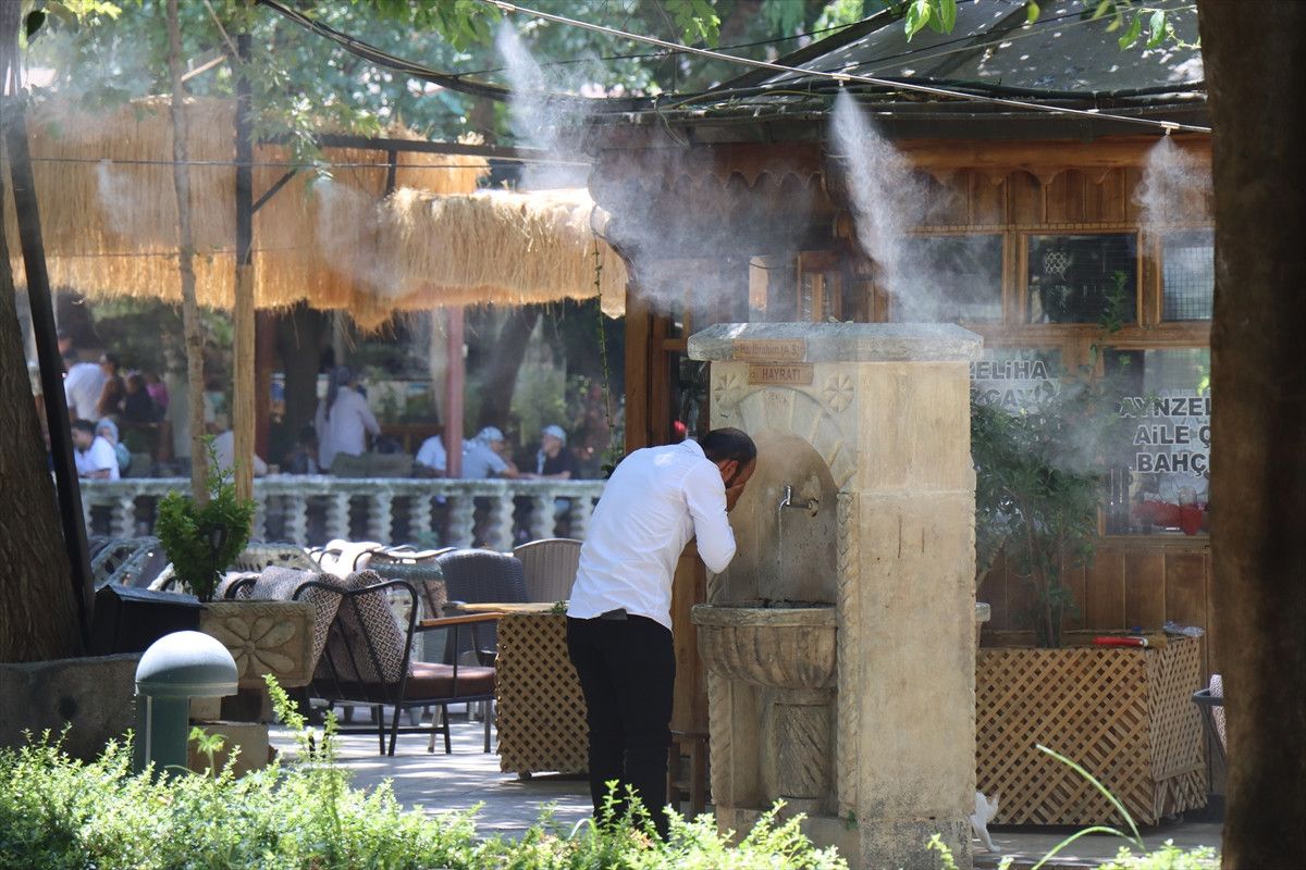 Sıcaktan korunmak isteyen kimi kent sakinleri, gölgelik alanlarda vakit geçirirken kimileri çeşmelerden yüzünü ve başını ıslatarak serinlemeye çalıştı.