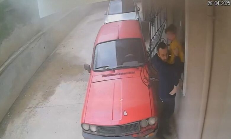 O anlar apartmanın güvenlik kamerasına da yansıdı.