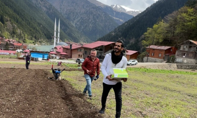 Trabzon’da Arap turistler, mısır eken vatandaşlara hurma dağıttı