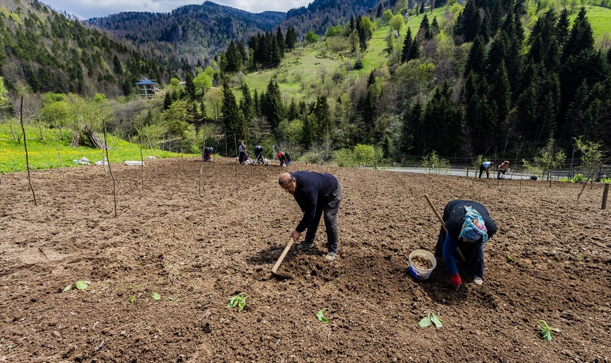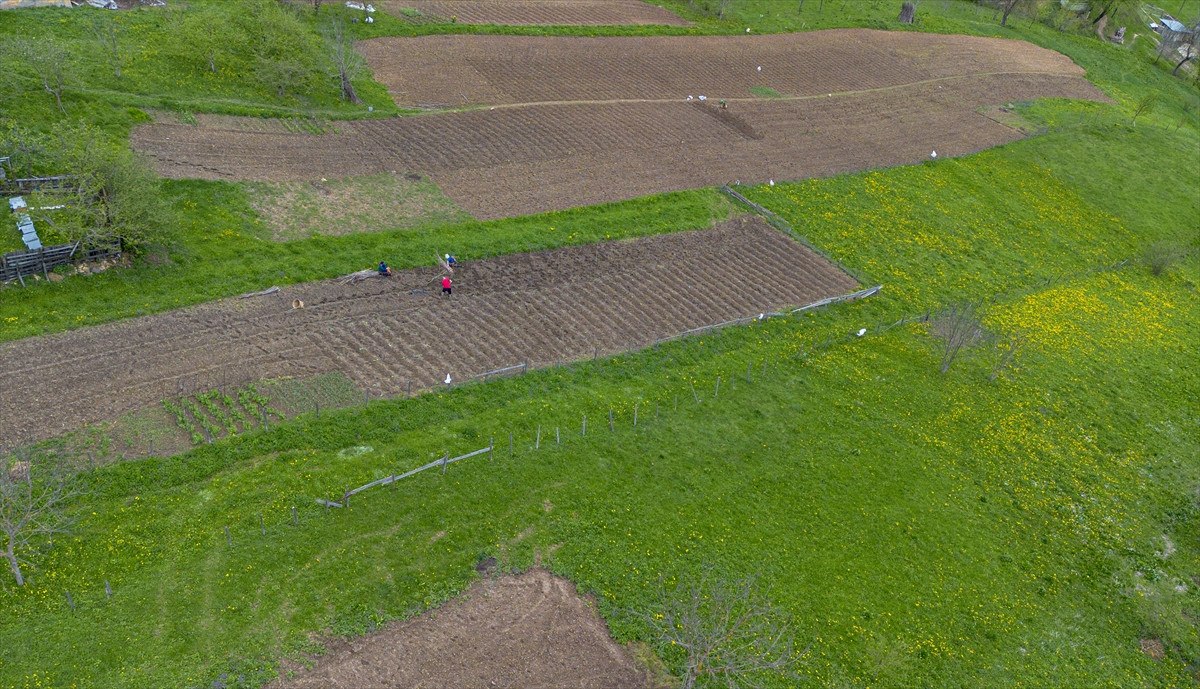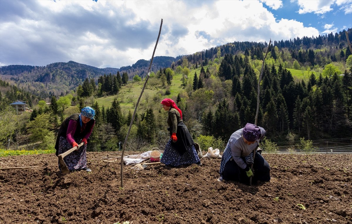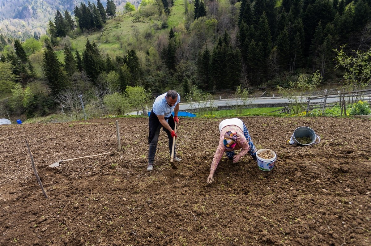 Trabzon’un Tonya ilçesine bağlı Kalınçam Mahallesi’nde tarlalarda klâsik sistemlerle patates ekimi yapılıyor.