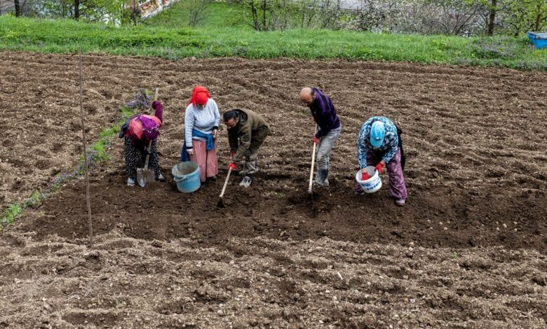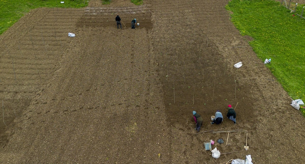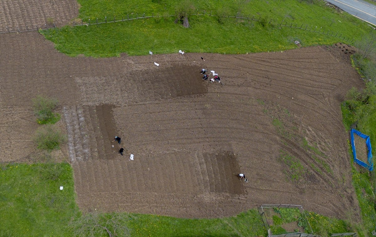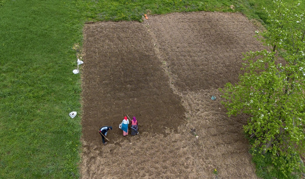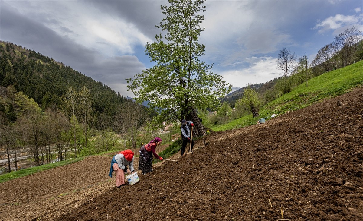 Trabzon’un Tonya ilçesine bağlı Kalınçam Mahallesi’nde tarlalarda klâsik sistemlerle patates ekimi yapılıyor.