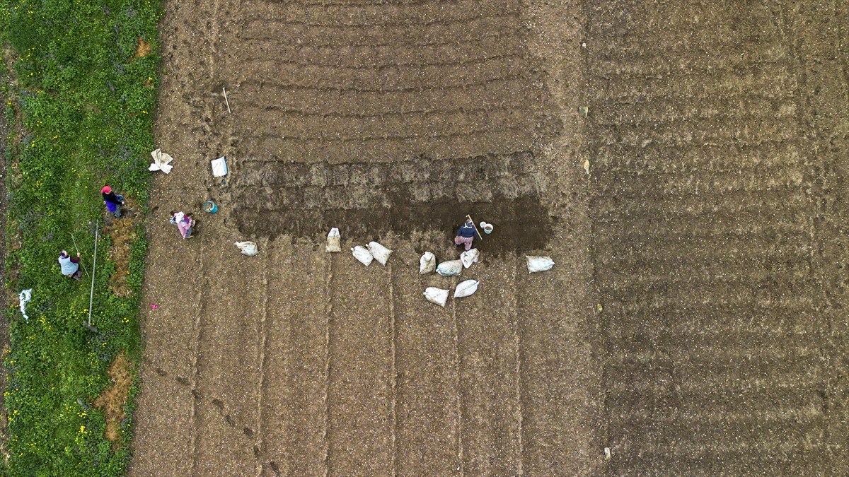 Sabahın birinci ışıklarıyla bağ, bahçe ve tarlalara inen çiftçiler, yeni mahsul patates için hava kararıncaya kadar ekime devam ediyor.