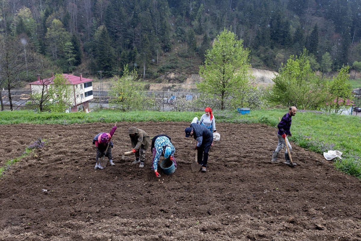 Trabzon’un Tonya ilçesine bağlı Kalınçam Mahallesi’nde tarlalarda klâsik sistemlerle patates ekimi yapılıyor.