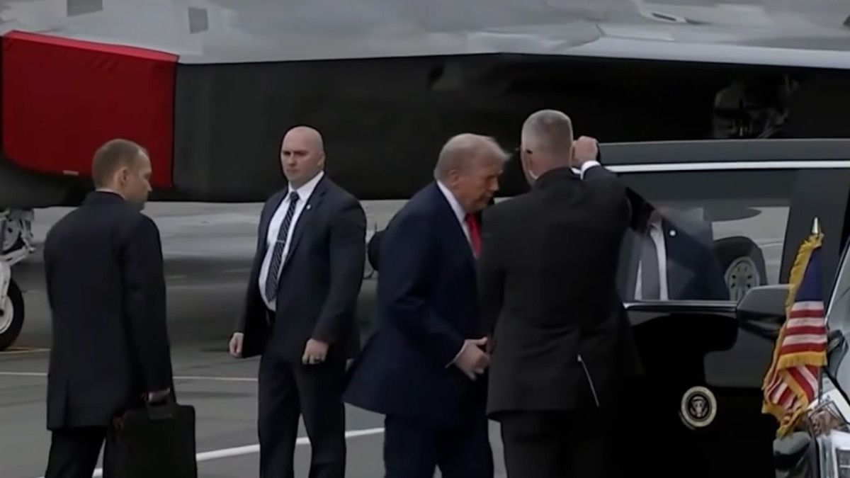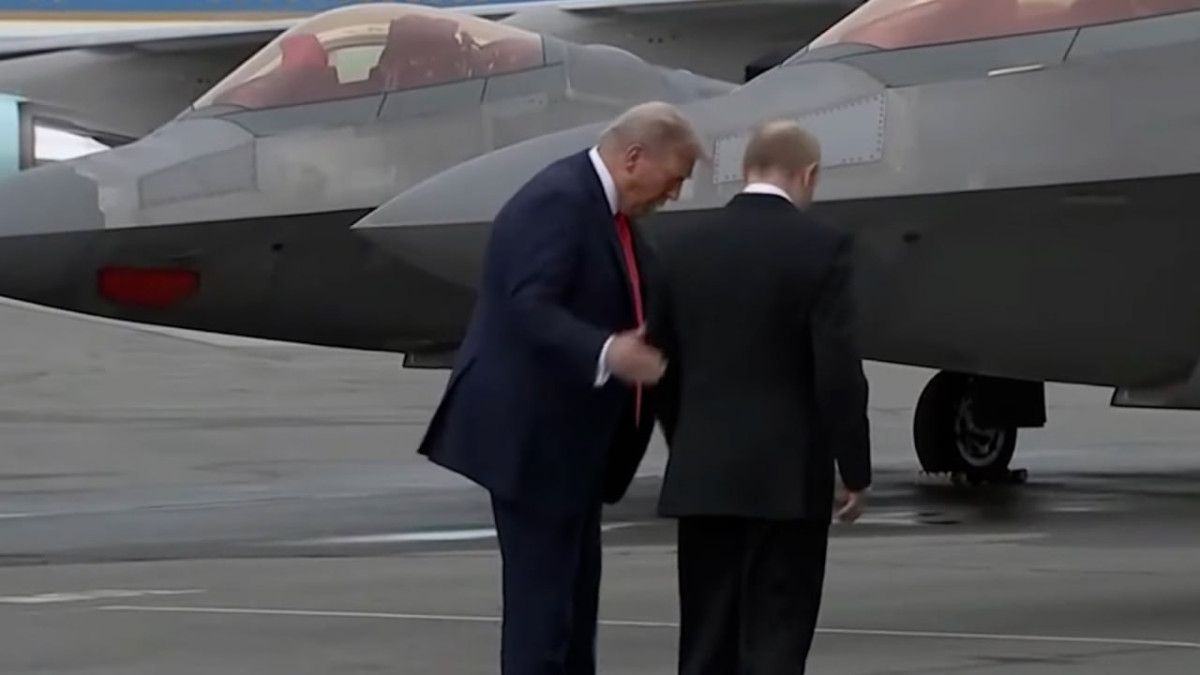 Putin ve heyeti üsse geldiğinde Trump, Rus lideri uçağında karşıladı. İki önder, görüşme alanına tıpkı araçla geçti.