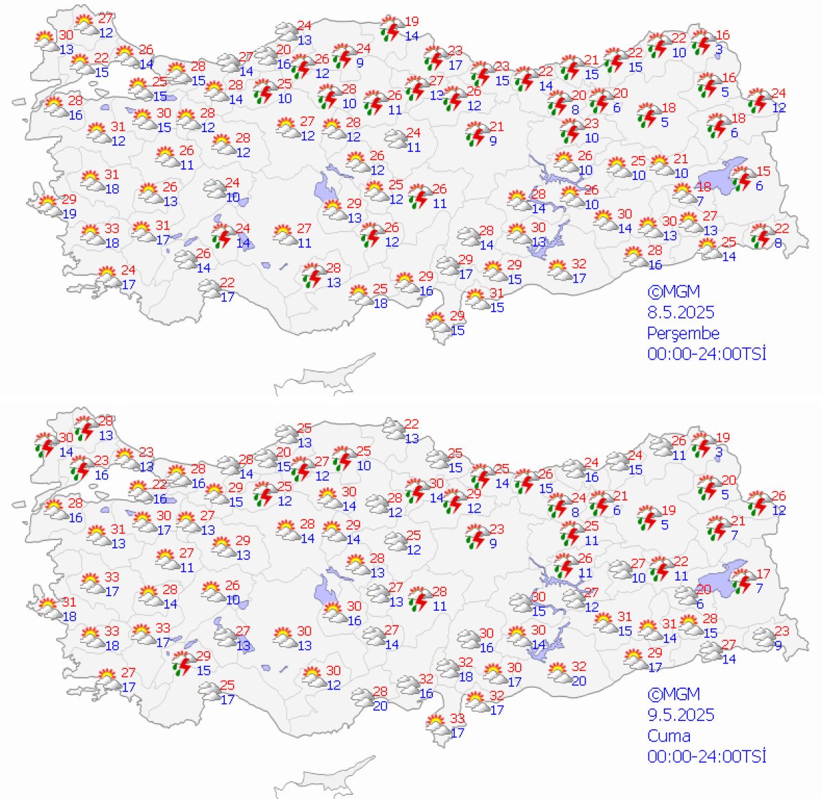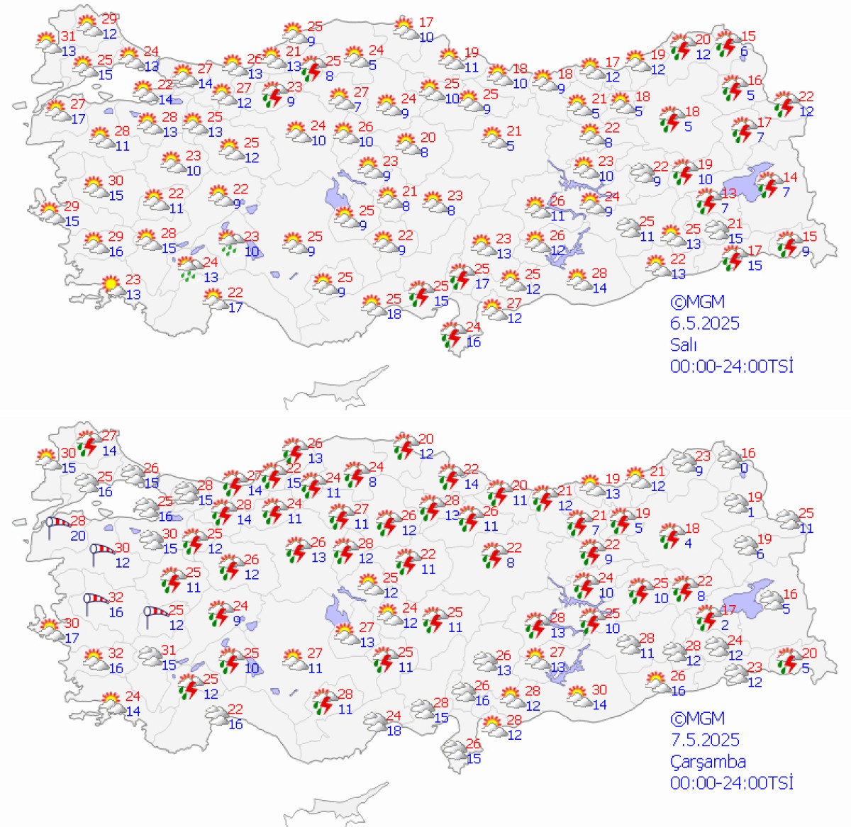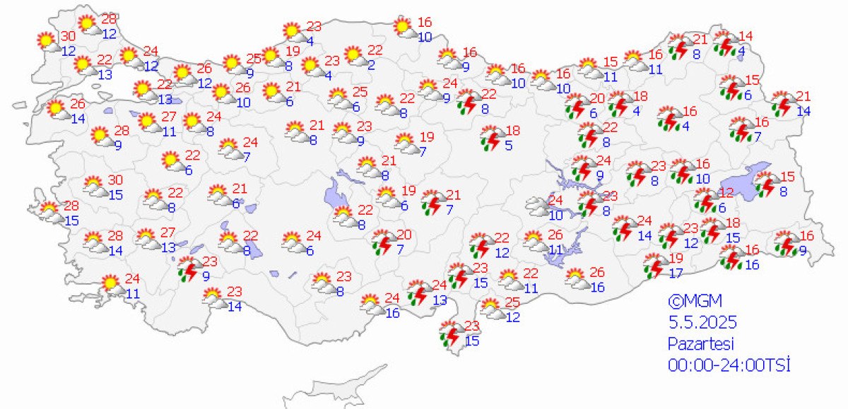 Salı günü Batı Akdeniz ve Batı Karadeniz’in iç kesitleri, Doğu Akdeniz, Doğu Anadolu’nun doğusuyla Rize ve Artvin etraflarında sağanak ve gök gürültülü sağanağın tesirli olacağının varsayım edildiğini lisana getiren Tekin, çarşamba günü yağış alanının genişlemesinin, Marmara’nın güneydoğusu, İç Ege, Akdeniz’in iç kısımları, İç Anadolu’nun kuzey ve doğusu, Orta ve Batı Karadeniz ile Doğu Anadolu’nun batısında yağış beklendiğini söz etti.