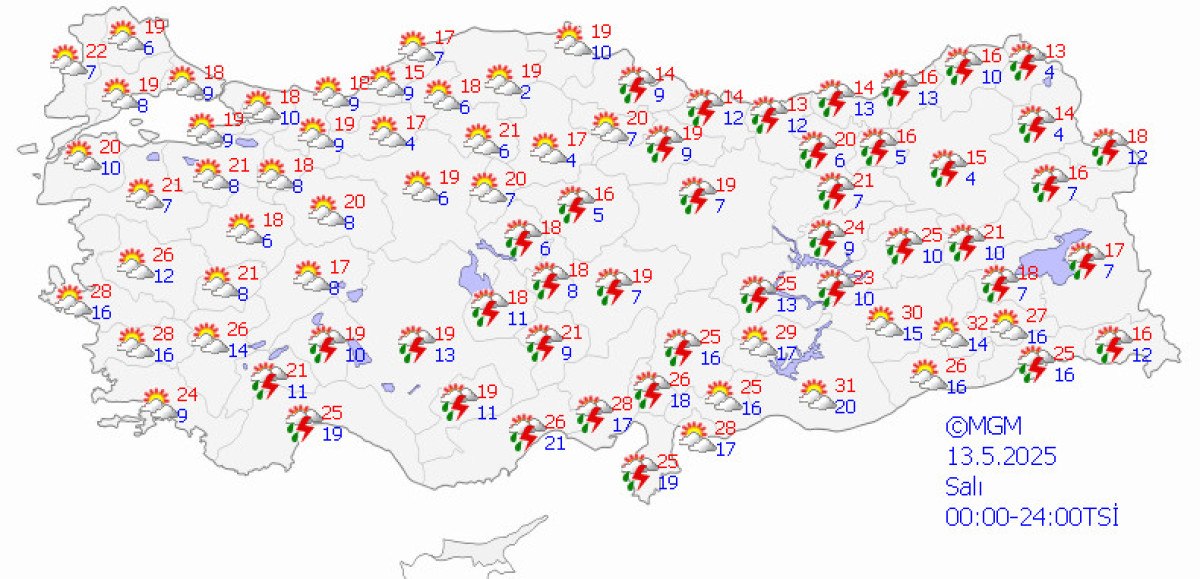 Çelik, cuma günü havanın çoğunlukla kesimli bulutlu geçeceğini ve iç kesitlerde kısa vadeli mahallî yağışlar görülebileceğini lisana getirerek, “Cumartesi günü birinci saatlerden itibaren Marmara’da bölge genelinde gök gürültülü yağışlar göreceğiz. Bu yağışlar yer yer kuvvetli olabilir. Öğlen saatlerine hakikat ise İç Anadolu’nun kuzey ve Batı Karadeniz’de gök gürültülü yağış geçişleri göreceğiz” diye konuştu.