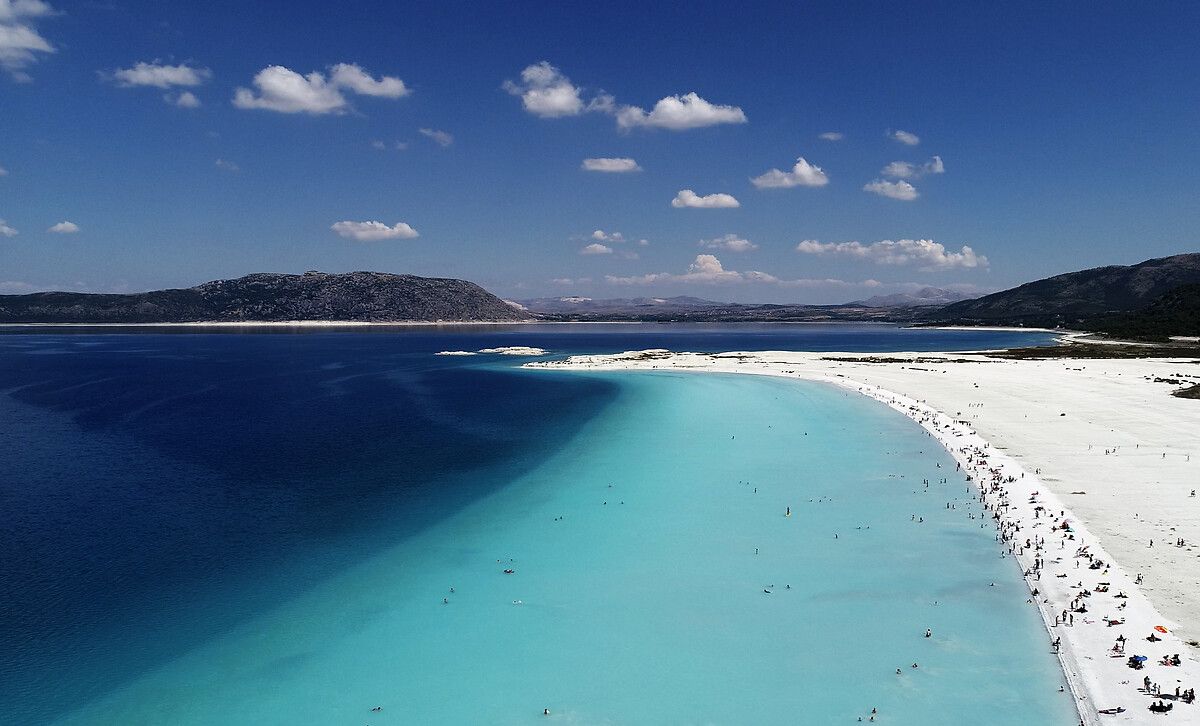 “Türkiye’nin Maldivleri” olarak tanımlanan Salda Gölü, turkuaz suyu ve beyaz kumsalıyla toplumsal medyanın en tanınan adreslerinden biri olmayı sürdürüyor.