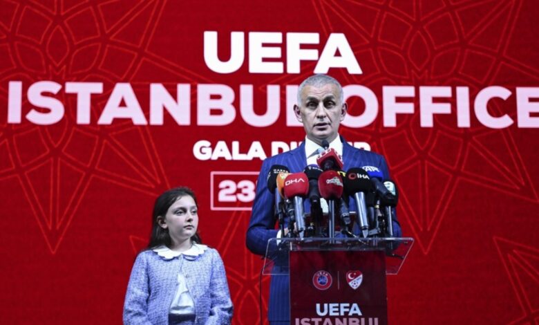 “2026’da final müsabakamız var, 2027’de de var. 2032’de Avrupa Şampiyonası organize edilecek. Hasebiyle çok sık işlerimiz gelişler gidişler çok fazla olacak. O yüzden sayın başkanın da tasarrufuyla bu türlü bir hem UEFA başkanı hem TFF başkanımızın ikili görüşmelerinde İstanbul’da bir merkezin çok güzel olacağı konuşuldu. Bugün bunu uyguluyoruz yarın açılışını yapacağız. Türk futbolu için çok güzel olacağını düşünüyoruz. Avrupa futbolu için de bir kolaylık ve ayrıcalık olacağını düşünüyorum.”