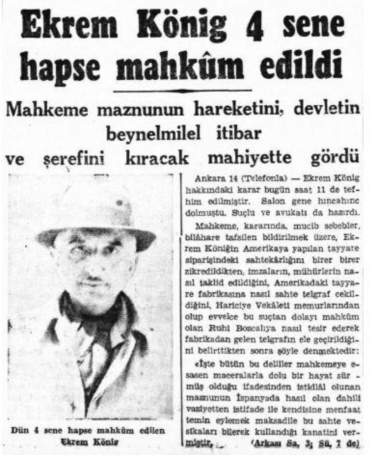 – Dr. Fatma Öztürk Şahin, “Uluslararası Bir Uçak Skandalı: Ekrem König Olayı”, Dokuz Eylül Üniversitesi Çağdaş Türkiye Tarihi Araştırmaları Dergisi, 2018 Bahar