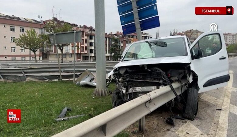 Ümraniye’de otoyolda bariyerlere saplanan araç