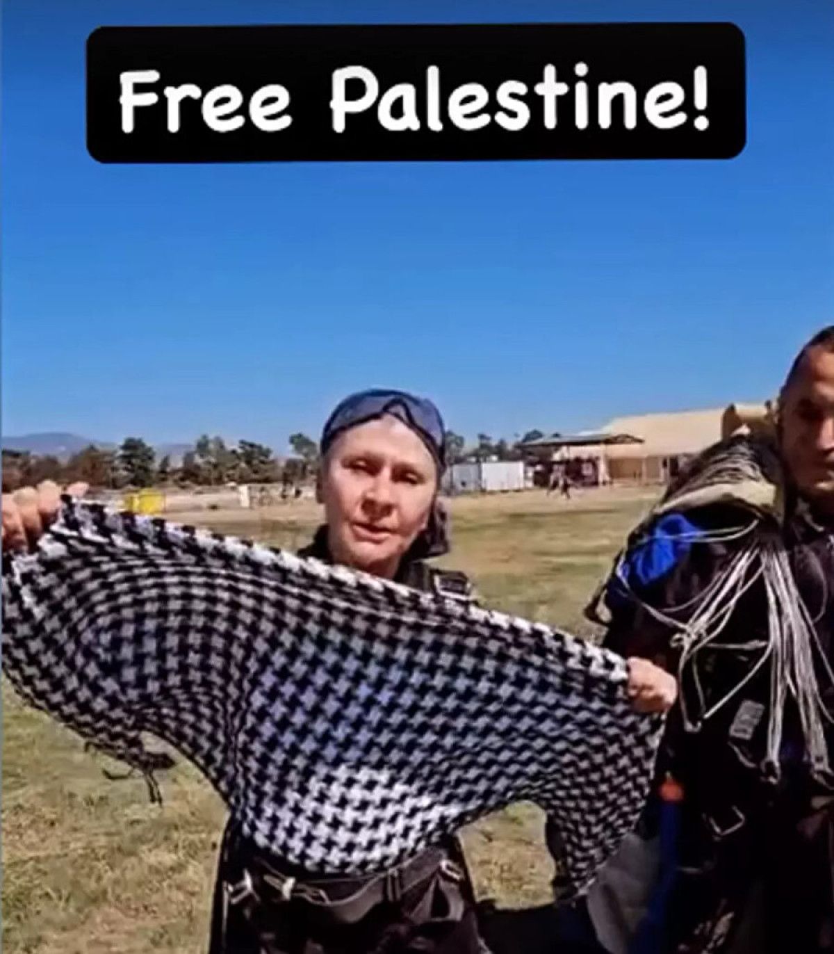 Gonca Cilasun, atlayış sonrası Filistin kefiyesi açarak “Filistin’e özgürlük” iletisiyle toplumsal medyada dikkat çekti.